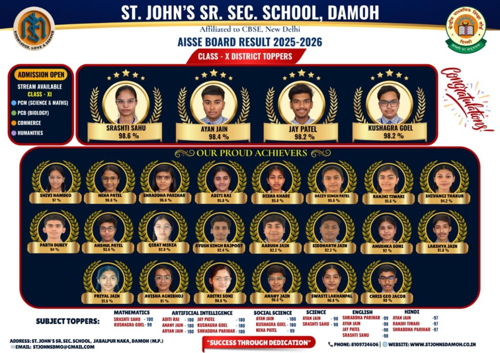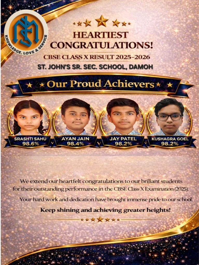 St. John’s Sr. Sec. School, Damoh proudly congratulates